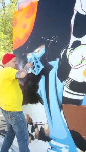 On to the Eurocultured Street Festival. The point of this event is to display modern street art from all over Europe. The majority of the visual art was graffiti, but there were a few paintings as well (and because this is such a nautical town, the paintings were all on the bottom side of boats). Other forms of art on display were music, food, sport (hacky sack, bmx, skateboard, etc) and break dancing.