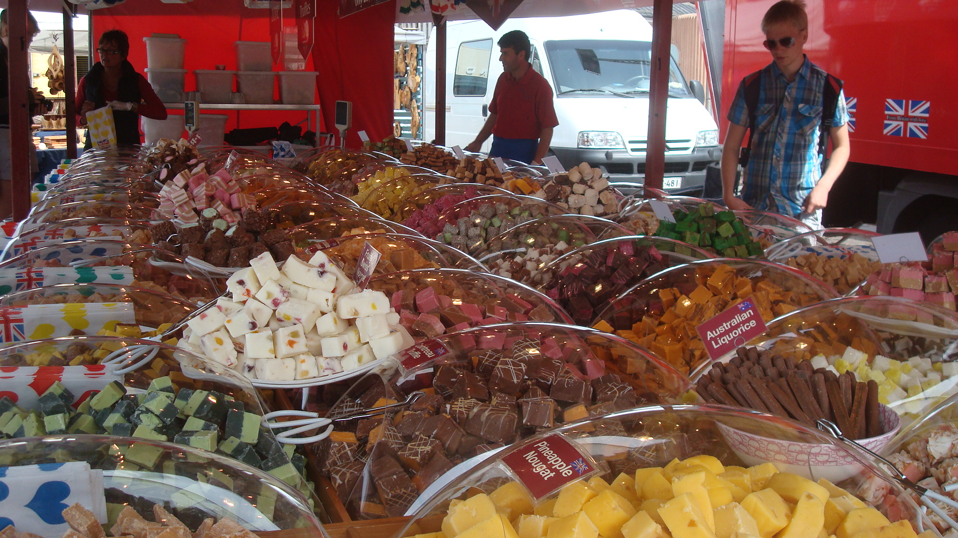Market Square is a great place to spend an afternoon mulling in between the stalls, and since it’s only 2 blocks from our apartment it’s a place that we frequent. Today, however, was the first time that we came across the British Fudge Company stall. Never in my life have I ever seen so much fudge in different colors and flavors in one place!