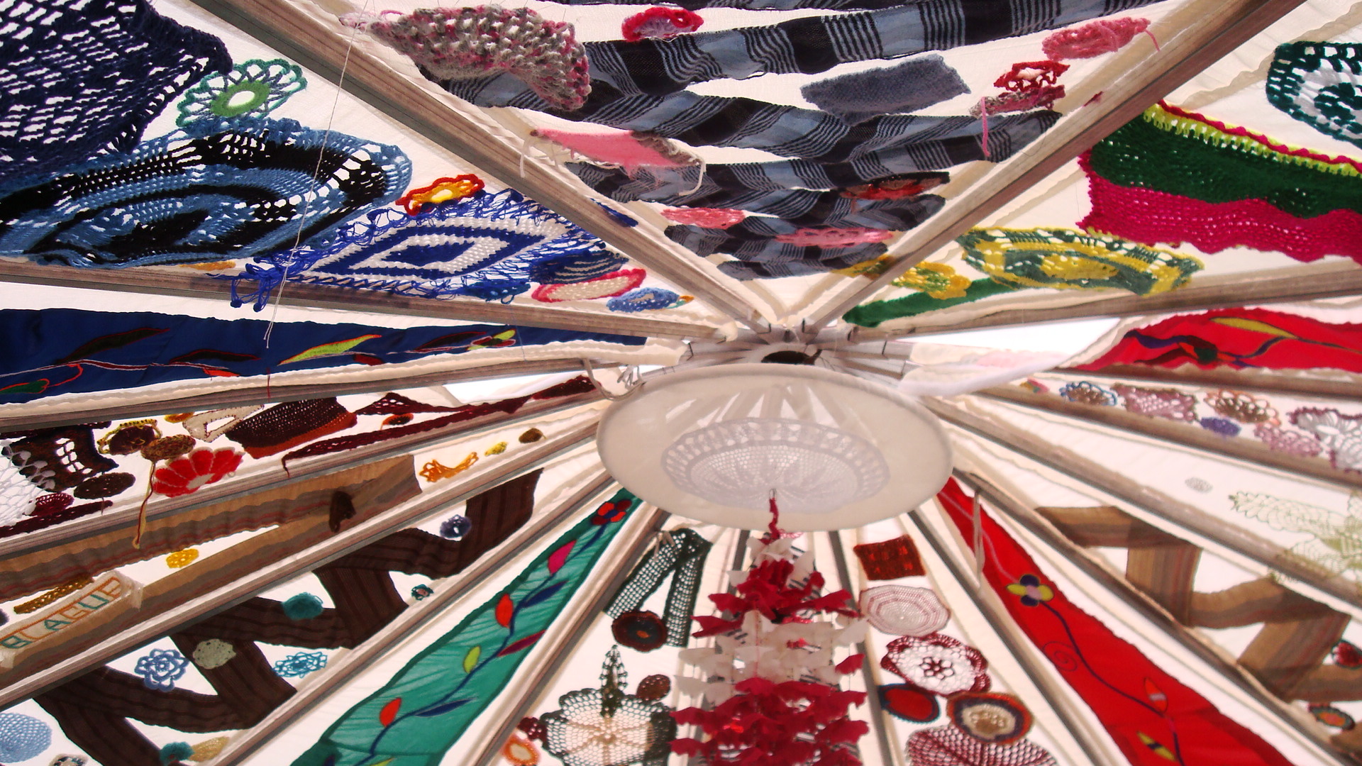 World Refugee Day falls on June 20th every year, and being in Finland I didn’t expect to hear a lot about it. I was wrong. Pots, Sandals and a Tent is a “participatory art installation and website about refugees made for the European Capital of Culture 2011, Turku, Finland.” Britt and I went over to the main library this weekend, where the tent has been on display for the past few days. Made up of handicrafts, mostly quilted/sewn pieces, by female refugees, the tent stands as a testimony to the injustices that millions of women, children and men have to face every single day. Each piece of handicraft represented the struggle that it’s creator faced, and the same themes kept resurfacing. “My homeland became too violent.” “There was too much instability.” “I had to get my children out.”
