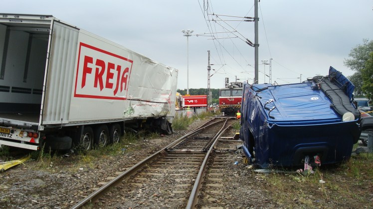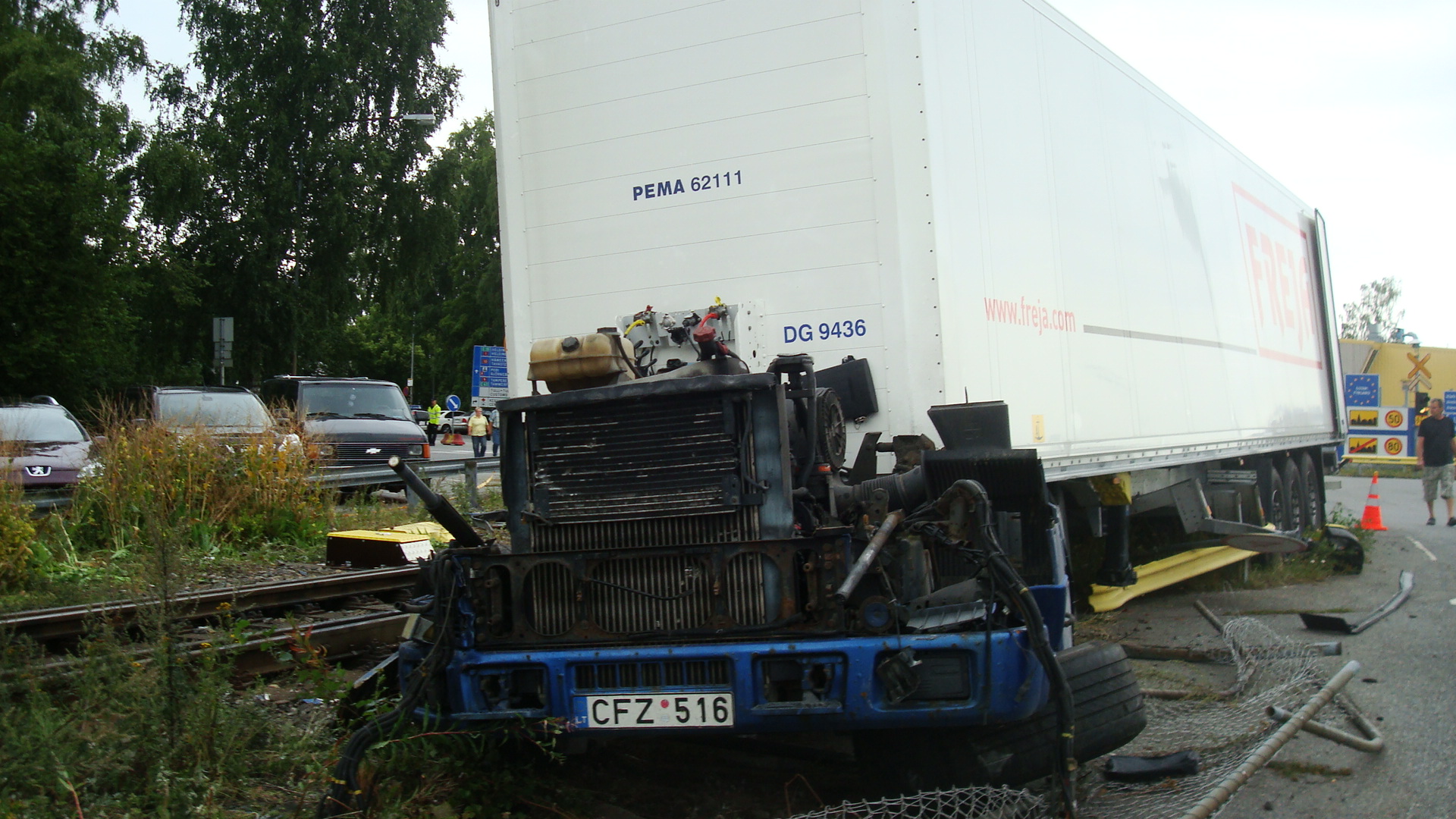 Don’t you love the feeling of peeling wet jeans, shoes, shirt etc. etc. off? Well, that what we got today for gawking. Britt & I decided to head out on a short bike ride down to the castle and back, and on our way we noticed an old train engine heading towards the harbor. We arrived at the castle a few minutes later, and ran into a friend so we stopped and chatted then headed around the other side of the castle and that’s when we came across the same old train engine again. Only, this time it was derailed and had split a truck in two.