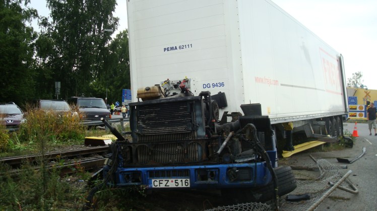 Although we were very close to the scene, we never heard any crash or sirens. The driver of the truck was no where to be seen, but by the looks of the cab (which got thrown to the other side of the tracks) he probably got pretty banged up. We joined the crowd of gawkers and watched the emergency crew work for several minutes, and just as we hopped back on our bikes to ride home it started to rain. No… it started to pour! Luckily, I was wearing a waterproof jacket, but it didn’t matter. By the time we got home we were both soaked to the bone, but I guess that’s what we get for gawking!