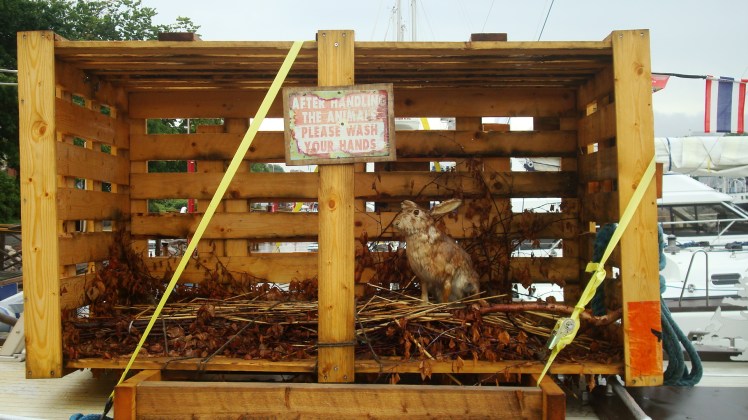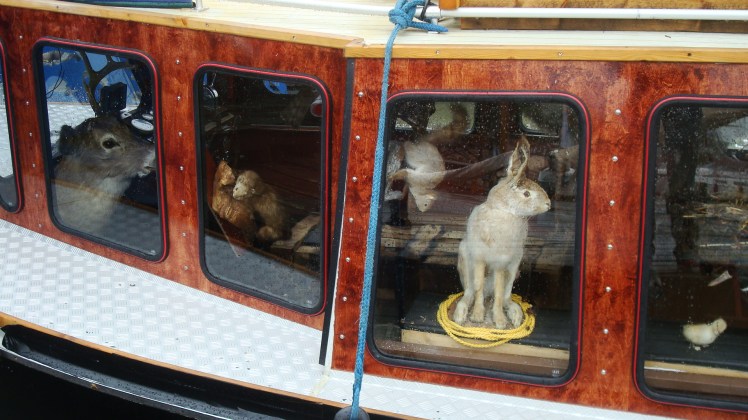 The small boat is covered in taxidermic animals, both inside and out and serves to remind us that we must be aware of nature and how our actions directly affect wild animals well-being.