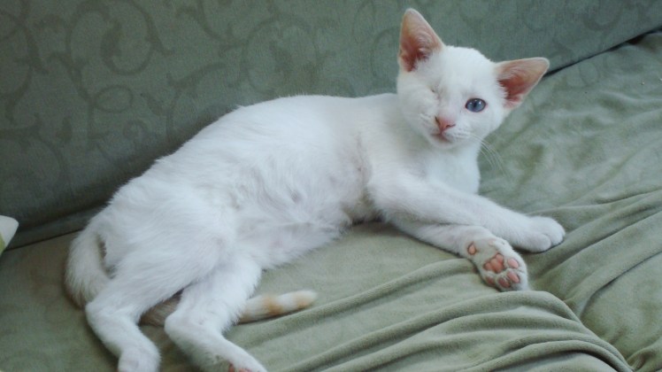 And Arri, as in “Arr, I’m a pirate and I only have one eye.” (Kudos to my sister for thinking of such a clever name. Arri was found as a baby kitten only a few weeks old and her eye was so infected that they had to remove the entire thing. It’s healed nicely, and she seems fine without it.)