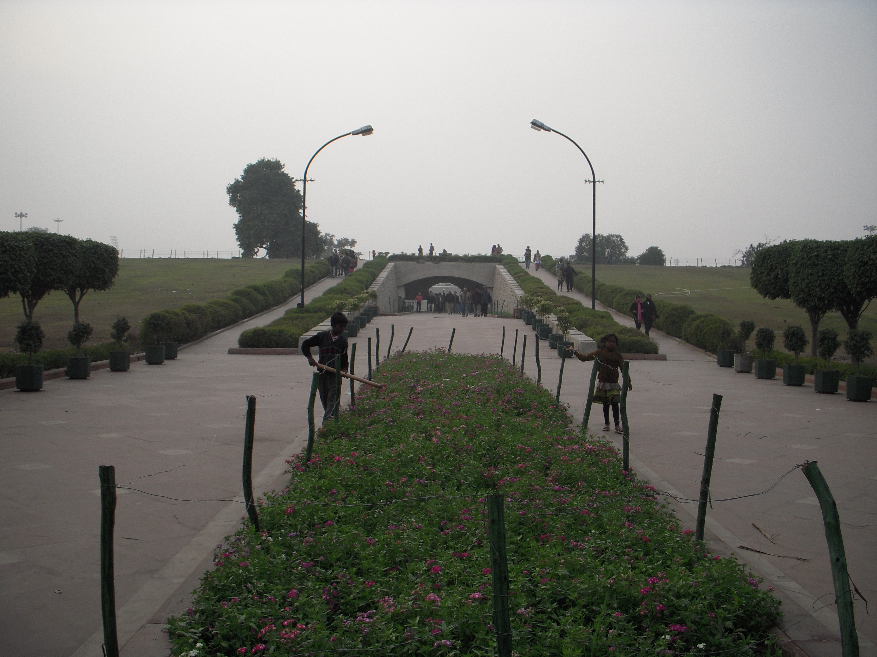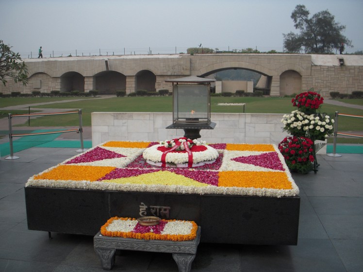 the site where the Mahatma Gandhi was cremated. You have the choice to either go up and look down on the site, or you can walk right up to the memorial itself.