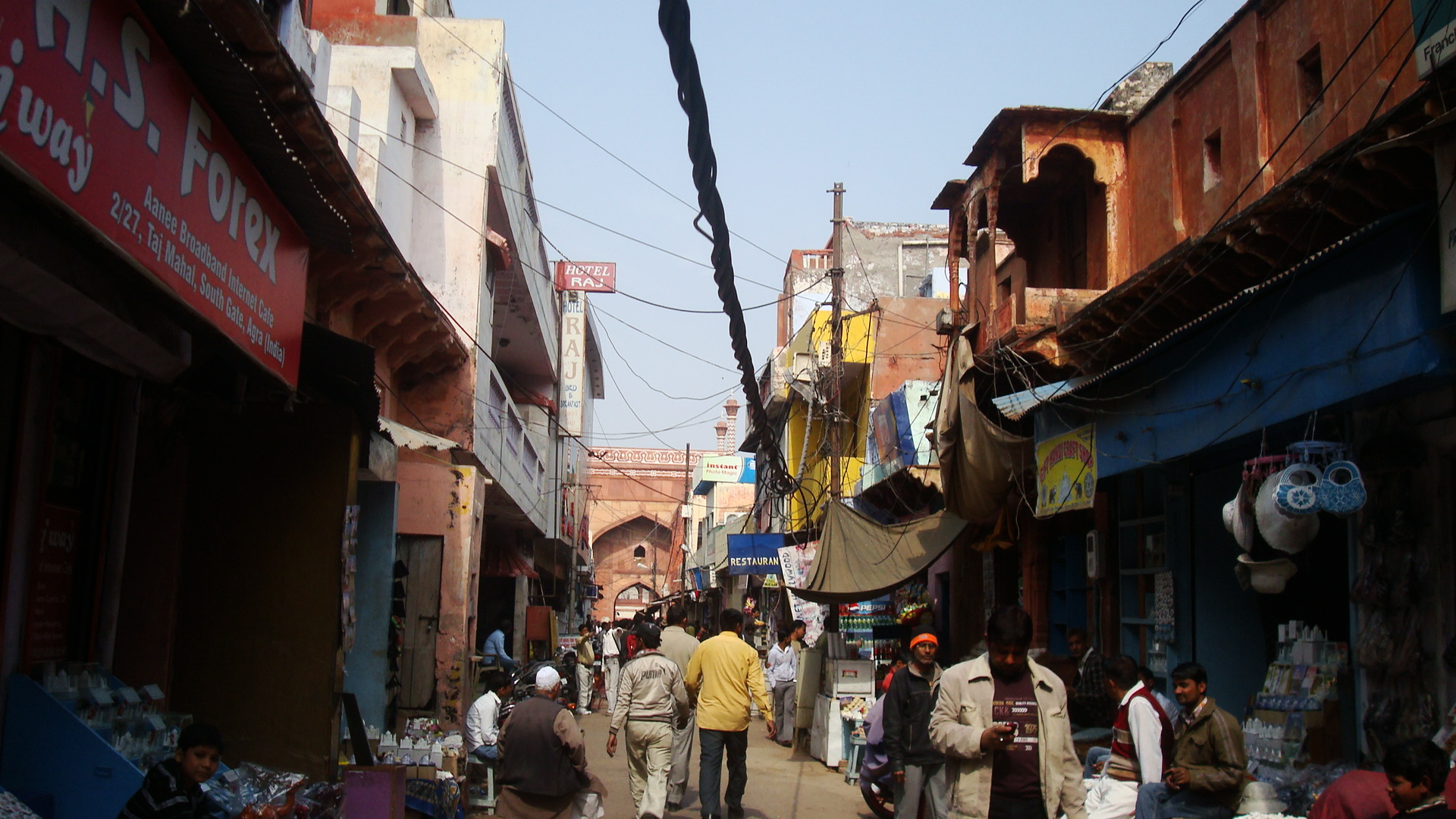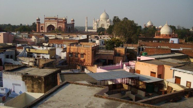 The outside of the gates were a stark contrast to the wealth and beauty of the Taj. What has sprouted up along the East, South and West sides can only be described as a slum-city. Poverty, mountains of trash, sewage and crumbling buildings make up the surrounding neighborhood. Thanks again to Lonely Planet we found ourselves making our way through the narrow streets, trying desperately not to get hit by auto-rickshaws and motorcycles speeding by, in order to find a restaurant.