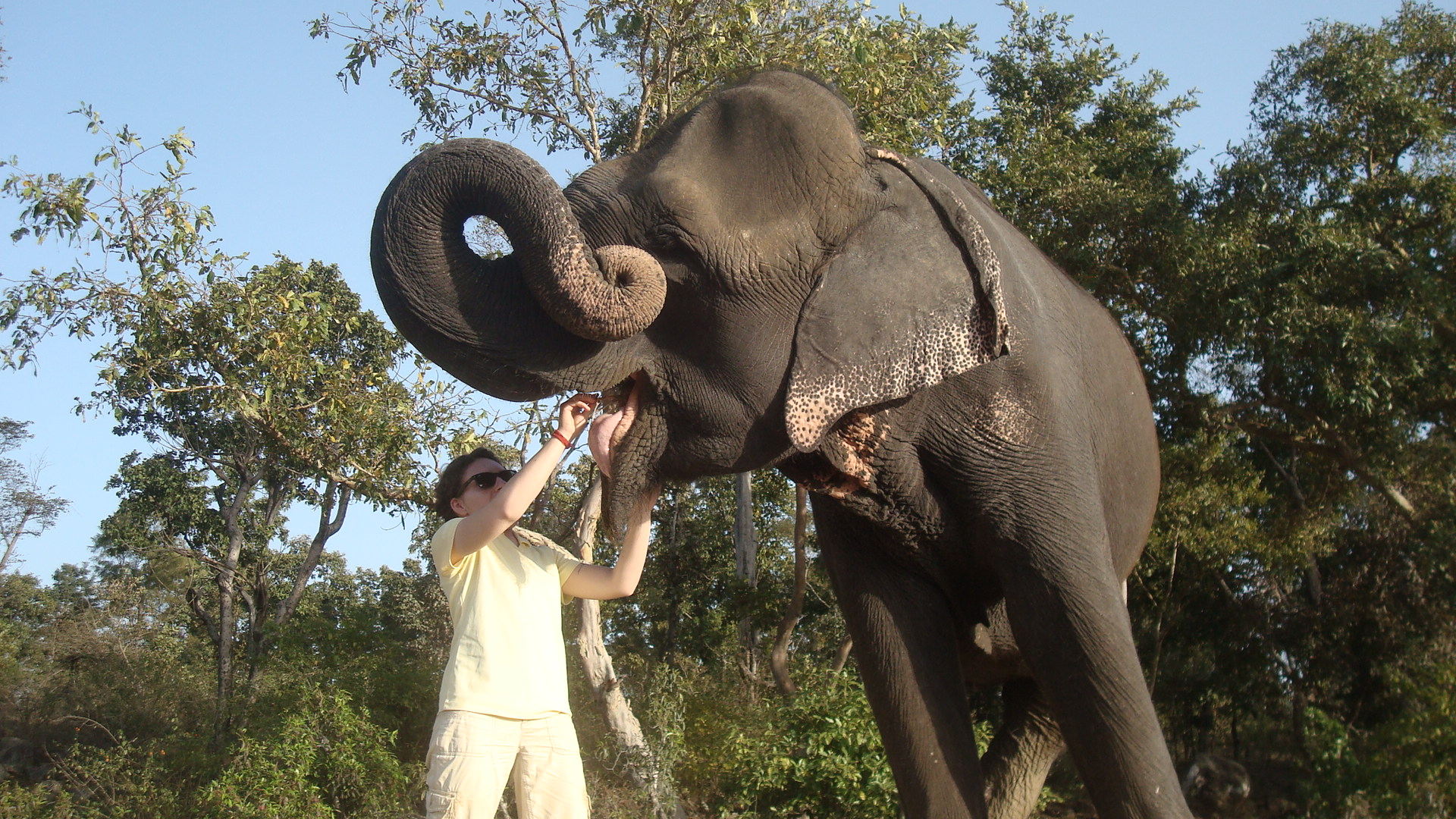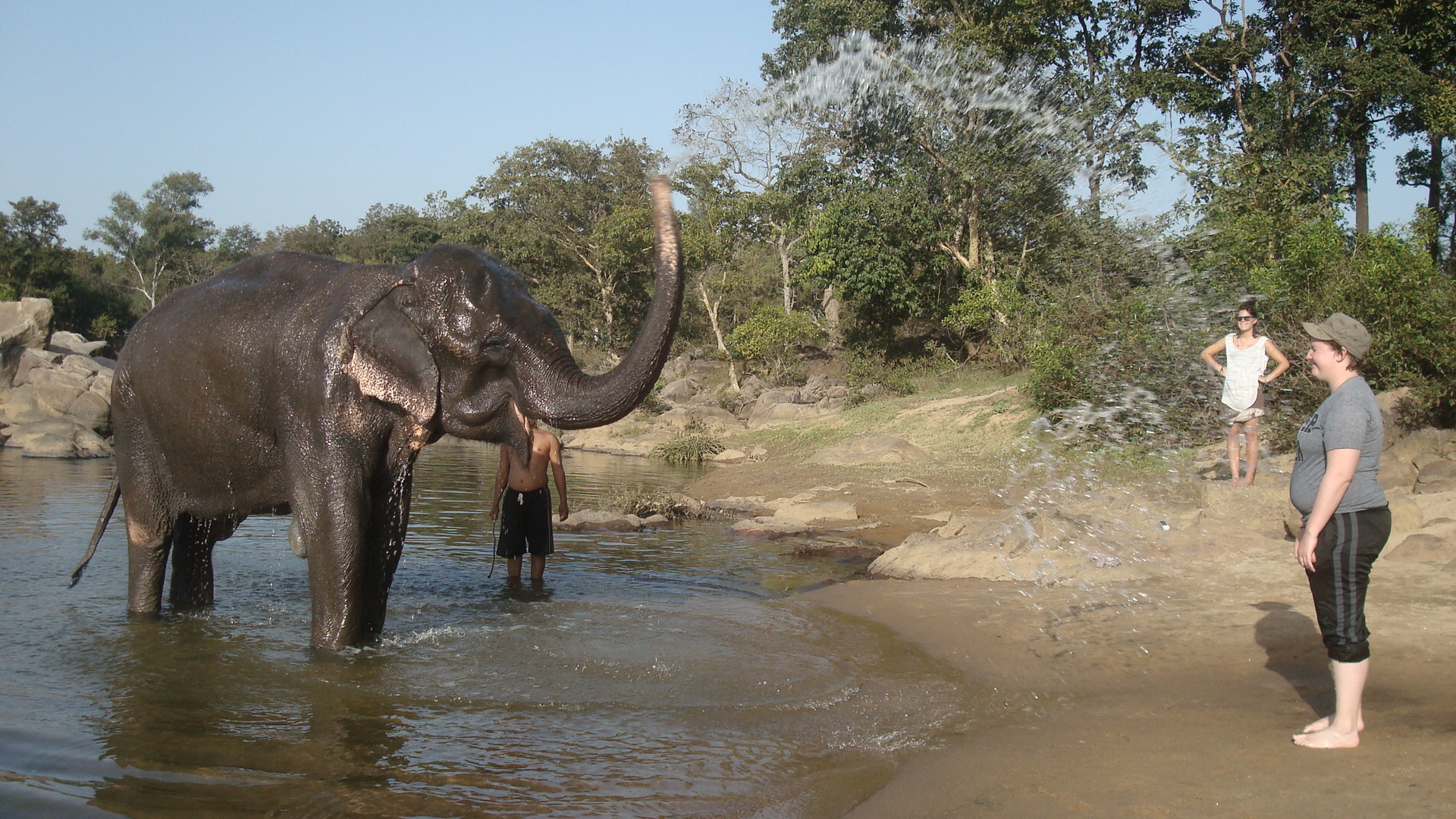 Never in a million years did we think that one day we would be giving an elephant a bath in India! It was a blast! After we had scrubbed her from head to trunk she was in the mood to play some more. This time she focused her energy on Britt…