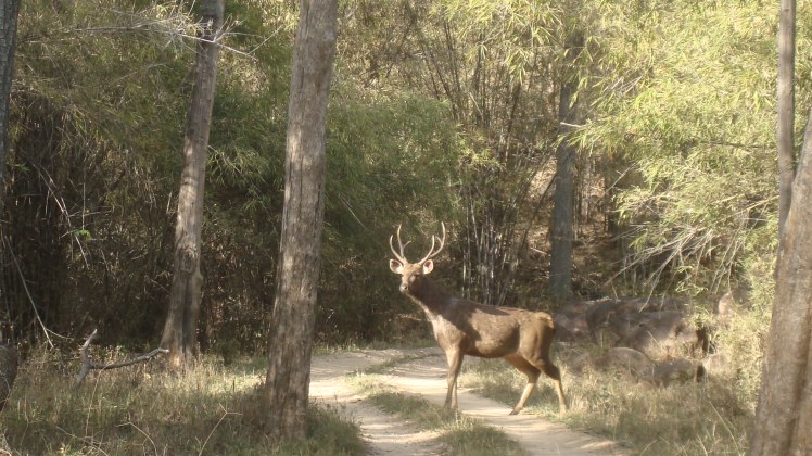 We spent most of the time tracking tigers, by following the alarm calls of the langur monkey and the barking deer, and searching for pug marks. The tiger was the main “goal” so any other animal we saw along the hunt was incidental. We did end up seeing two tiger cubs, but because of the dense jungle we didn’t get any pictures.