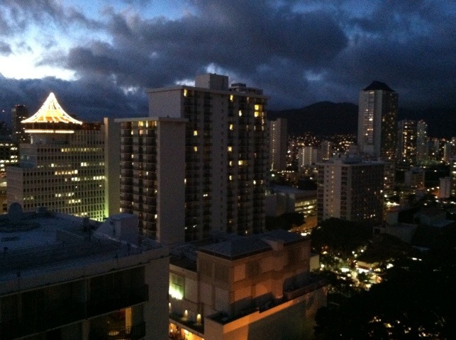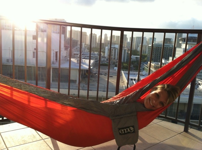 Our rooms are at the top floor giving us a great view, not only of the beach, but also of downtown Honolulu. As if the view wasn’t enticing enough to spend all of our time on the balcony, we set up our hammock we brought with us and immediately took to lounging around like a couple of beach bums.