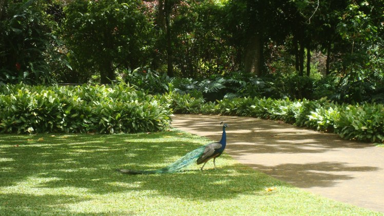 In order to see more of Oahu than just Waikiki, we rented a couple of cars and hit the road. There are about a dozen main roads, and only 3 highways on the island so getting from the South to the North side was pretty straight forward. As we left downtown Honolulu the scenery drastically changed from skyscrapers to pineapple fields to lush mountains. The North shore of Oahu seemed way more laid back, and nestled right off of the coast was a small, unsuspecting road that led to Waimea Valley. After parking the cars and heading towards the hiking path we were greeted by one of the local residents…