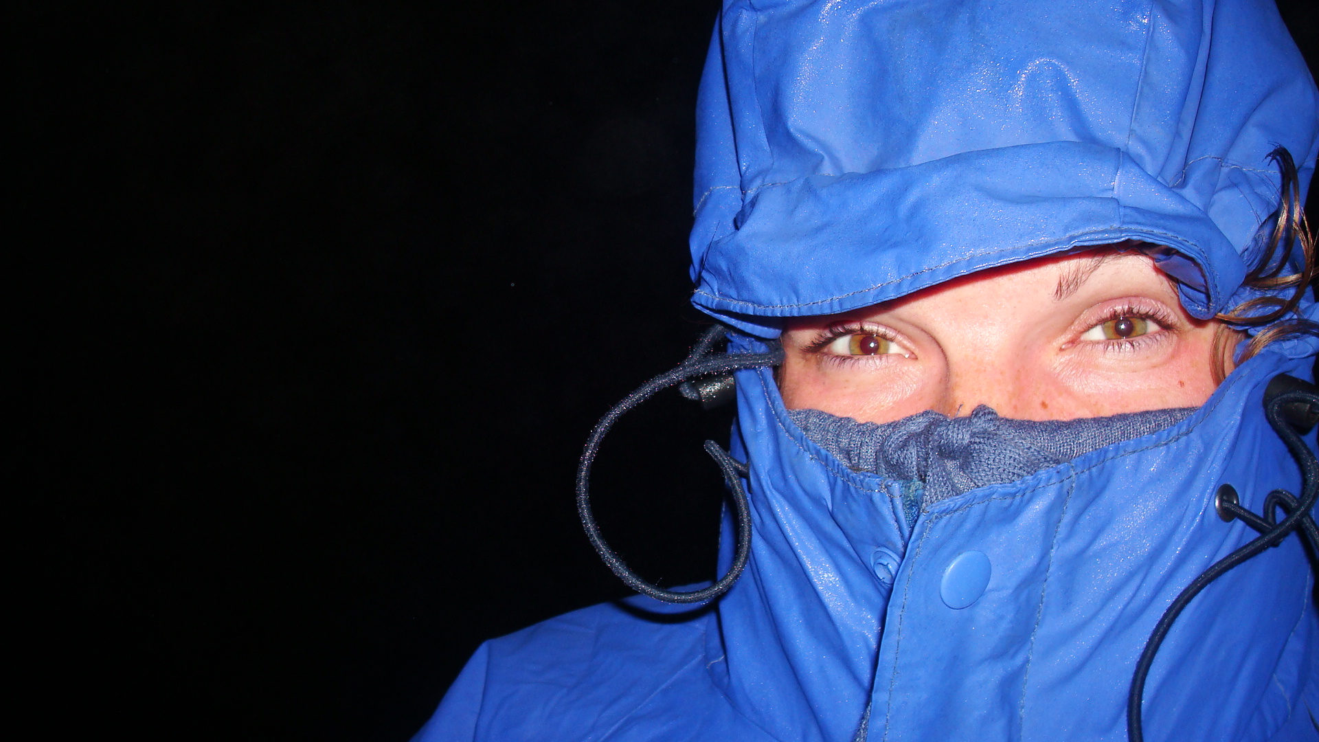 We were picked up at our resort at the un-godly hour of 2am, and then driven to the Maui Mountain Cruiser’s headquarters where we hitched a trailer to the back of the van. Then, we headed up the to the summit of Haleakala, which sits at around 10,000 feet above sea level. When we booked our trip we were warned to wear warm clothes because it’s so cold at the summit, and before we were let out of the van we were each given a fleece jacket, and a complete rain suit. We opened the van doors and were slapped in the face with violent 35 degree winds. We bundled up as tightly as we could, and staked out a spot along the crater’s edge to watch the sunrise.