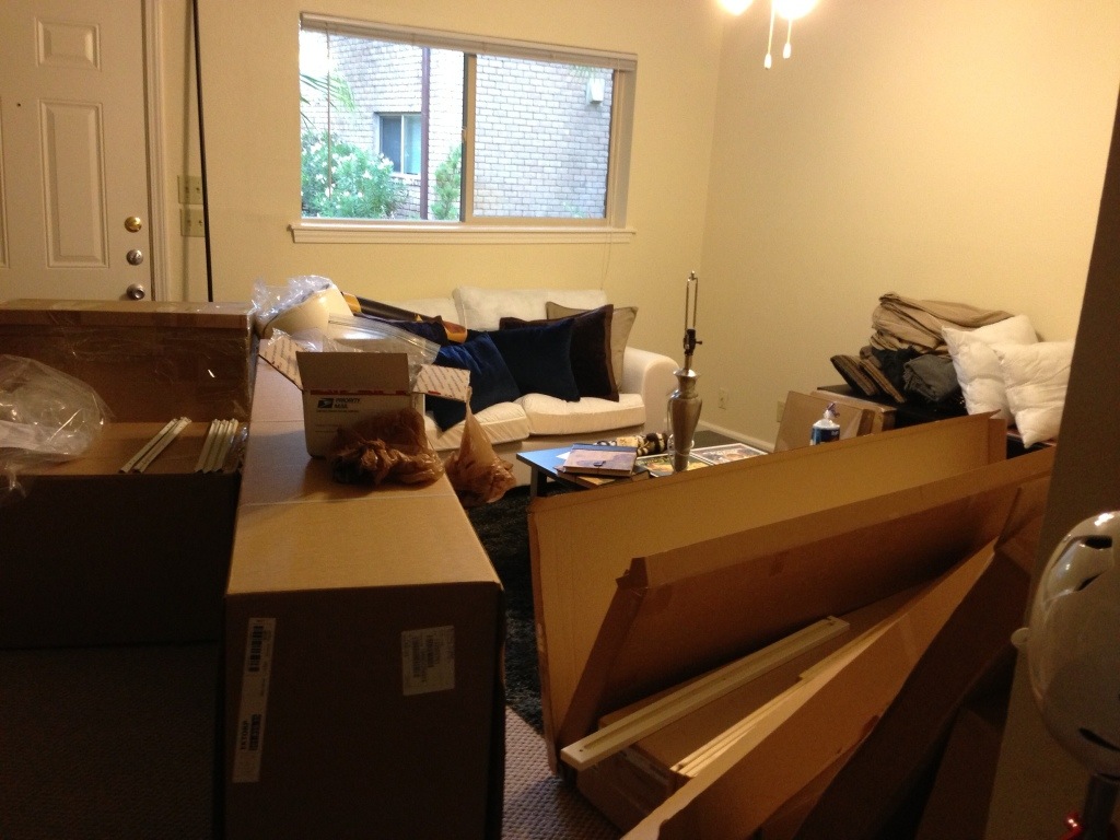 We chose a relatively small place to live, because it was available for move-in right away and it is in a great location. We didn’t think anything of it, but when our storage unit from Chicago arrived, followed by our delivery of new items from IKEA, the apartment began to shrink. All of the deliveries came on Thursday, and we had to be completely unpacked and settled by Sunday for a home visit (we adopted a dog and a home visit was required before we could take her out of boarding). So began the unpacking, and building of furniture.