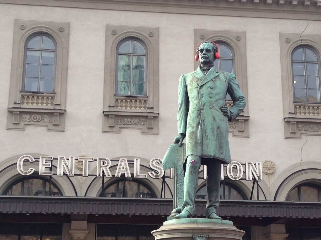 After four hours, and two near-vomiting accidents later (our seats were facing backwards, which instantly made me nauseous) we pulled in to Stockholm Central Station where it was so cold even the statues needed earmuffs.