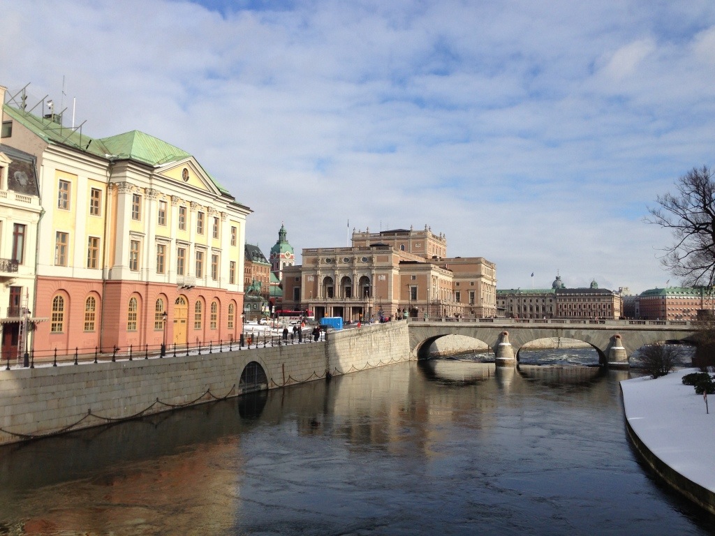 On to the city itself. The first thing we thought when stepping out to explore the town was, “oh my god, it’s so cold!” You would think that with the temperatures at or below freezing, there wouldn’t be very many people out and about, but the weather seems to have no effect on the Stockholm-ians. More people were walking the streets of Stockholm in the arctic weather, than there seem to be on the streets of Houston on any sunny 72 degree day. Not only that, but there were hundreds of people who had bundled up their babies and loaded them in their pram (stroller) for a walk in the city! Though it sounds like madness, after walking around for just a short while it was evident that the scenery alone was worth fighting the cold.