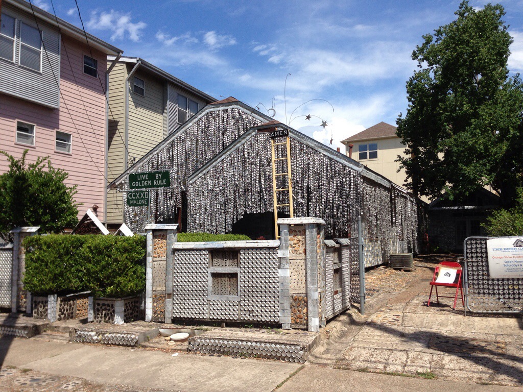 The Johnson Space Center, Mission Control, the discovery of oil in 1901 and the Texas Medical Center, the largest medical center in the world, are a few of the things that make Houston a world renown city. John Milkovisch is not a name that you will find associated with any of the aforementioned. However, this “jolly, beer-drinking Houstonian” has gone down in the history books for creating “a monumental work of visionary art that rivals any like it in the world.” After 17 years of saving, and over 50 thousand beer cans later John transformed his rather ordinary house into the now-world famous Beer Can House.