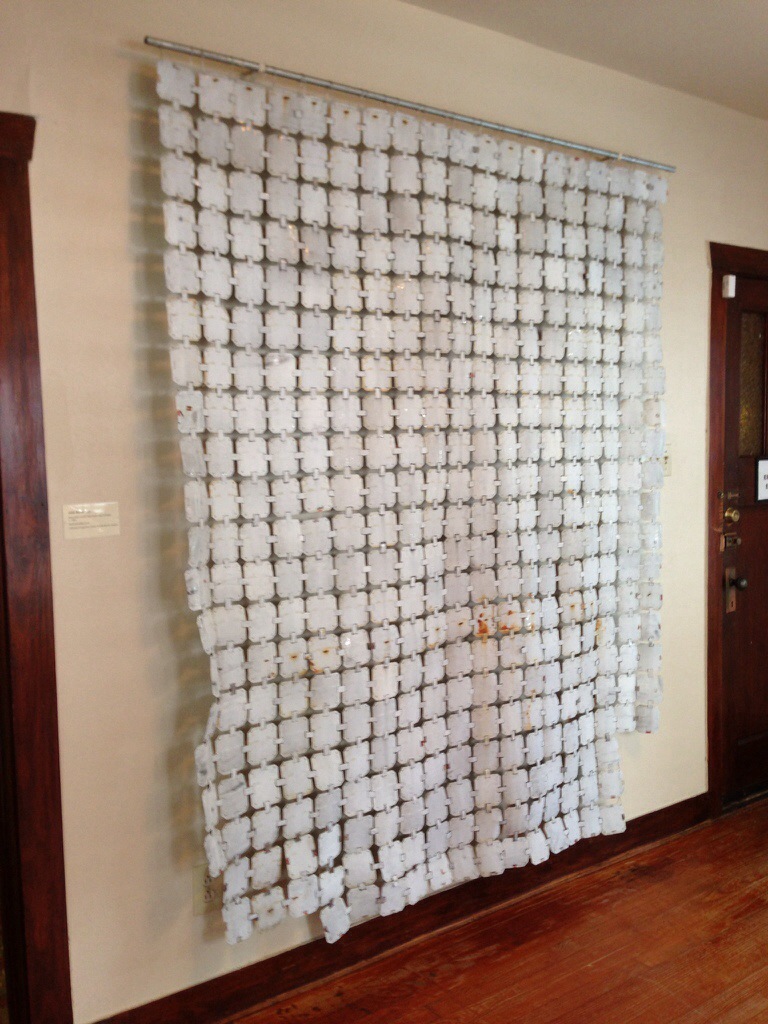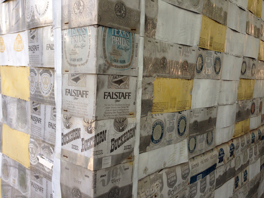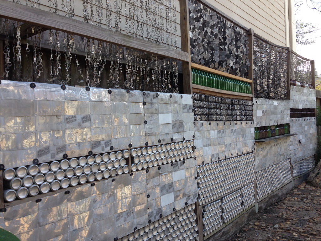 Then, he retired, and that’s when things escalated. Like I mentioned earlier, John enjoyed beer, and with beer comes cans and bottles. Lots of them. For 17 years John and his wife, Mary, saved the cans and bottles from their ritual of ending the day on their patio with a couple of cold ones. With a lot of time, and beer cans on his hands, John dreamed-up the idea of making curtains out of the cans to shield their house from the wicked Houston sun. And that’s just what he did. He made and hung beer can curtains, all the while his wife thought he had gone crazy.