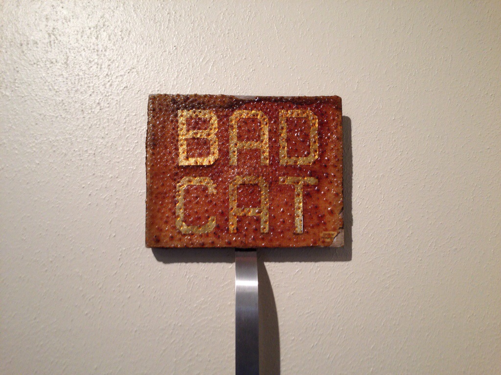 Mr. Milkovisch is someone I wish I could have met, and not only because of his artistic endeavors. From visiting the Beer Can House museum (which is the interior of the actual house), watching a video interview and reading a short biography of him, it is evident that he was one ornery cat. Speaking of cats, John’s neighbor put up a “Bad Dog” sign in his yard, though he never owned a dog. So, in response John, who didn’t own any kind of animal, made a “Bad Cat” sign and put it up in his front yard for all to see.