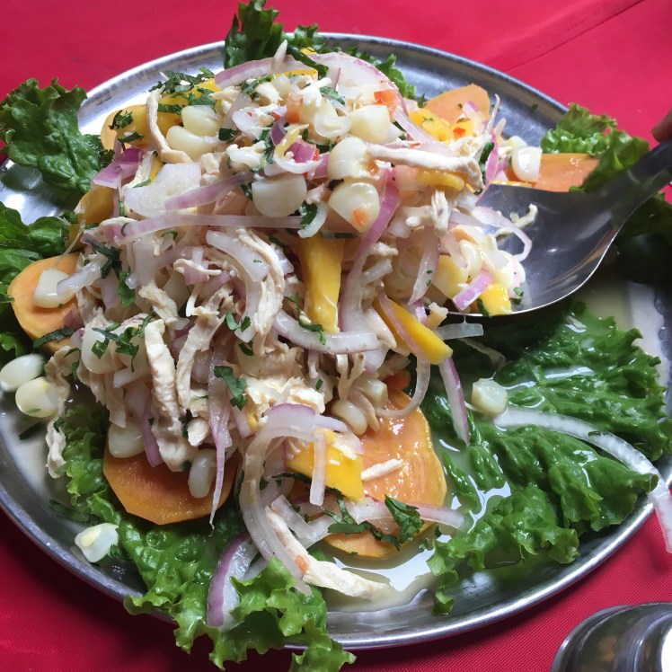 Seeing me admire this strange looking plant, Jose informed me that it was black mint and was a favorite for stuffing into guinea pigs when they throw them on the fire…whole. Lovely. Speaking of food, as we drug ourselves into camp our chef, Cesar, and his sous-chef, Rene, had a lunch spread out that was fit for royalty. Chicken ceviche, stuffed avocado, fish and rice. There was no holding back. We absolutely gorged ourselves. This would prove to be a very poor decision in a matter of hours, but until then I thoroughly enjoyed myself.