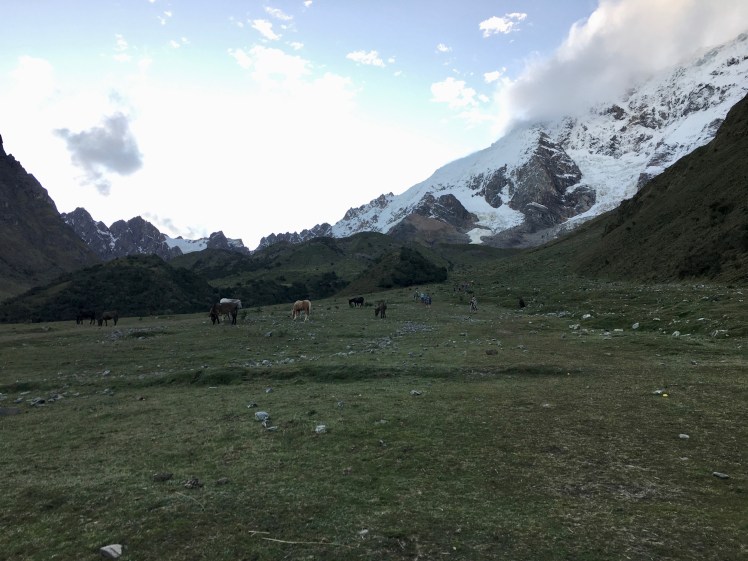 I will save you the graphic details of what happened next, but just know that every ounce of food, every grain of rice that was once in my stomach was now on the side of Salkantay. It took all of 5 minutes to completely empty my innards via my mouth, and it left me with just enough energy to crawl back to my tent and shimmy into my sleeping bag. I tried to let sleep wash over me, but the cold would not allow it. Shivers, violet spasms of shivers, kept me awake and incredibly uncomfortable. The temperature was in the upper 20’s (F) and though our sleeping bags were rated for extreme cold, I could not get warm. Thankfully, in one of my fleeting moments of trip preparations back in the States, I purchased a bivvy. What’s a bivvy, you ask? You know those foil bags that turkeys are cooked in, to expedite the baking process? Well, they make those in ‘human’ size for emergency weather situations, such as this. The foil bag reflects body heat back onto you, creating a furnace-like environment that sounds like you’re sleeping in a giant candy wrapper every time you so much as take a deep breath. It comes sealed in the size of a tennis ball, so unwrapping it to the point where you can shimmy inside takes a considerable amount of time and effort.