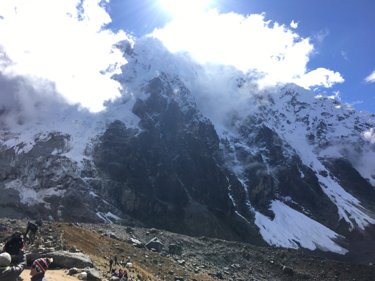 After two hours of practically vertical climbing – I offered several times to get off the horse because the climb was so steep – we made it to the summit. I, very clumsily, de-horsed, or however you say it, and wobbled my way on frozen legs and feet to get a good look at the Savage herself, Salkantay.